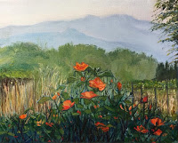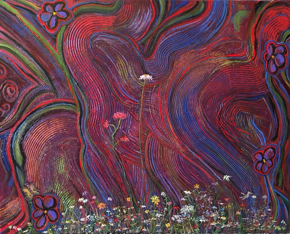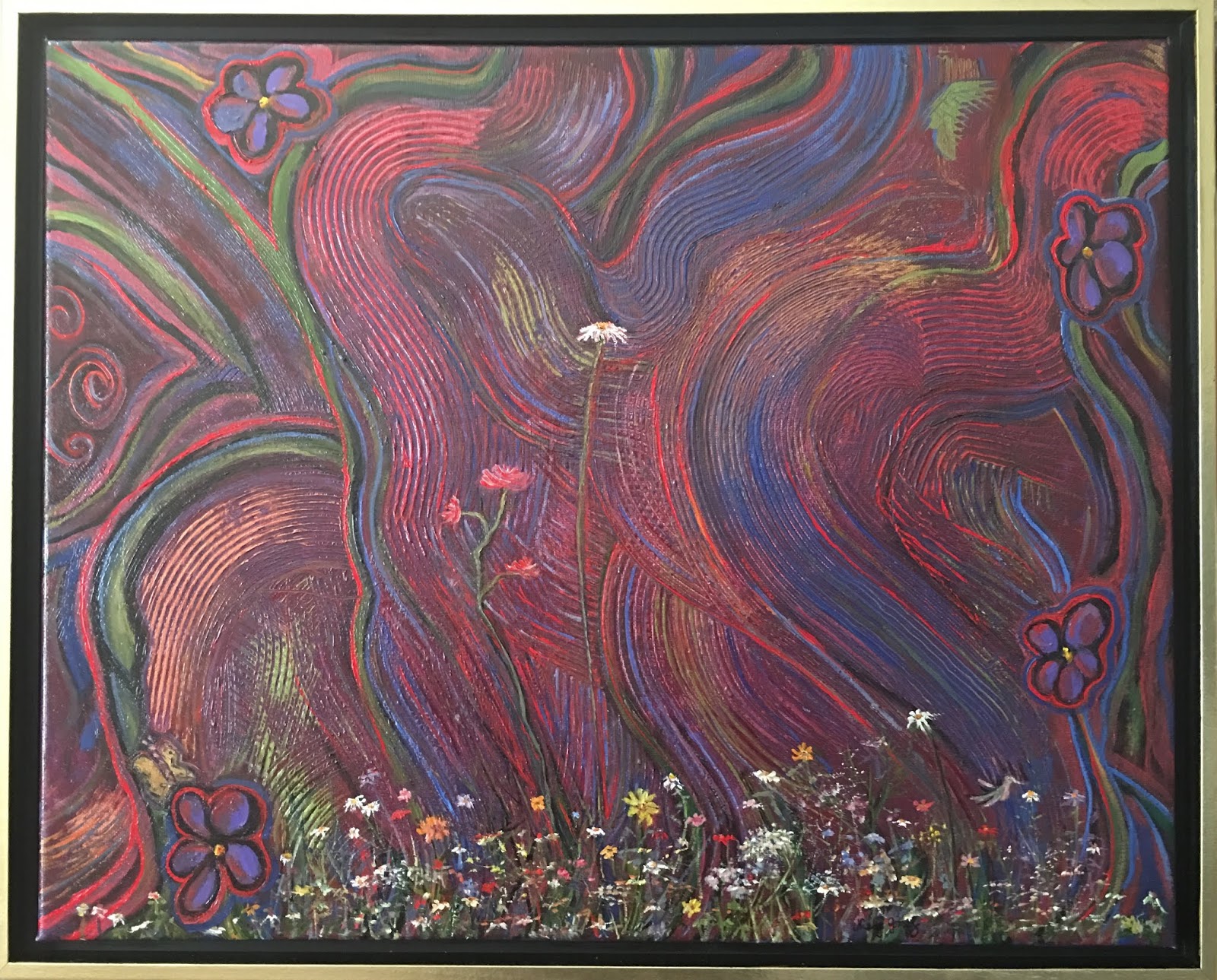 It has been a fairly busy summer, just after my last update mid July I made a departure from my usual oil paintings and did an abstract 16"x20" oil painting adding quite a bit of texture, color and enjoyed playing with something different. To the left is my finished painting "My Mind's Garden of Color" finished July 30th.