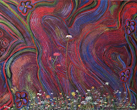 I also began another "Work in Progress" since we were having some monsoonal weather here in New Mexico, this one is not finished but is posted on the left. Funny that as I finished working on that painting which came straight from my mind, we saw on the late night news a few hours after I cleaned up there was a funnel cloud spotted in Taos a little earlier in the evening.
